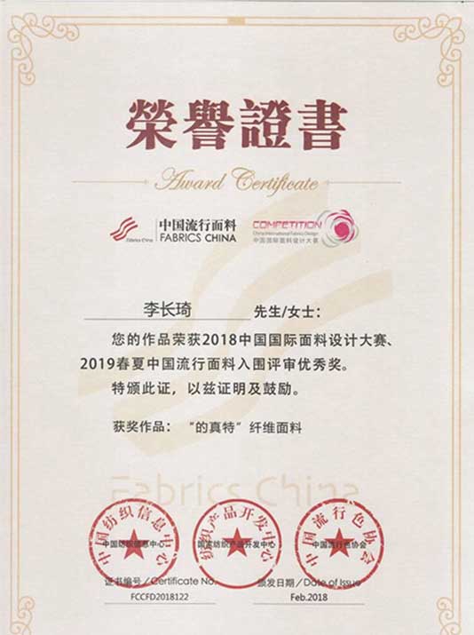 ▼國(guó)際面料設(shè)計(jì)大賽入圍評(píng)審優(yōu)秀獎(jiǎng)