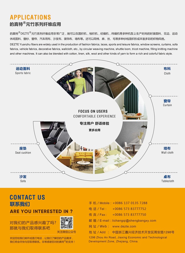 “的真特”錦綸竹節(jié)絲在本屆展會(huì)上第一次推出,她也是中國(guó)市場(chǎng)及國(guó)際市場(chǎng)上第一次出現(xiàn)。市場(chǎng)獨(dú)一無(wú)二她同樣具有“的真特”滌綸竹節(jié)絲的一切優(yōu)點(diǎn)。只是染色方法不同。
