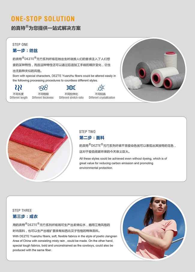 正是這些優(yōu)異的技術(shù)特性使得“的真特”竹節(jié)絲不但可以做罩衣類產(chǎn)品,而且貼身內(nèi)衣同樣可以適用。“的真特”竹節(jié)絲可以像FDY一樣貯存。